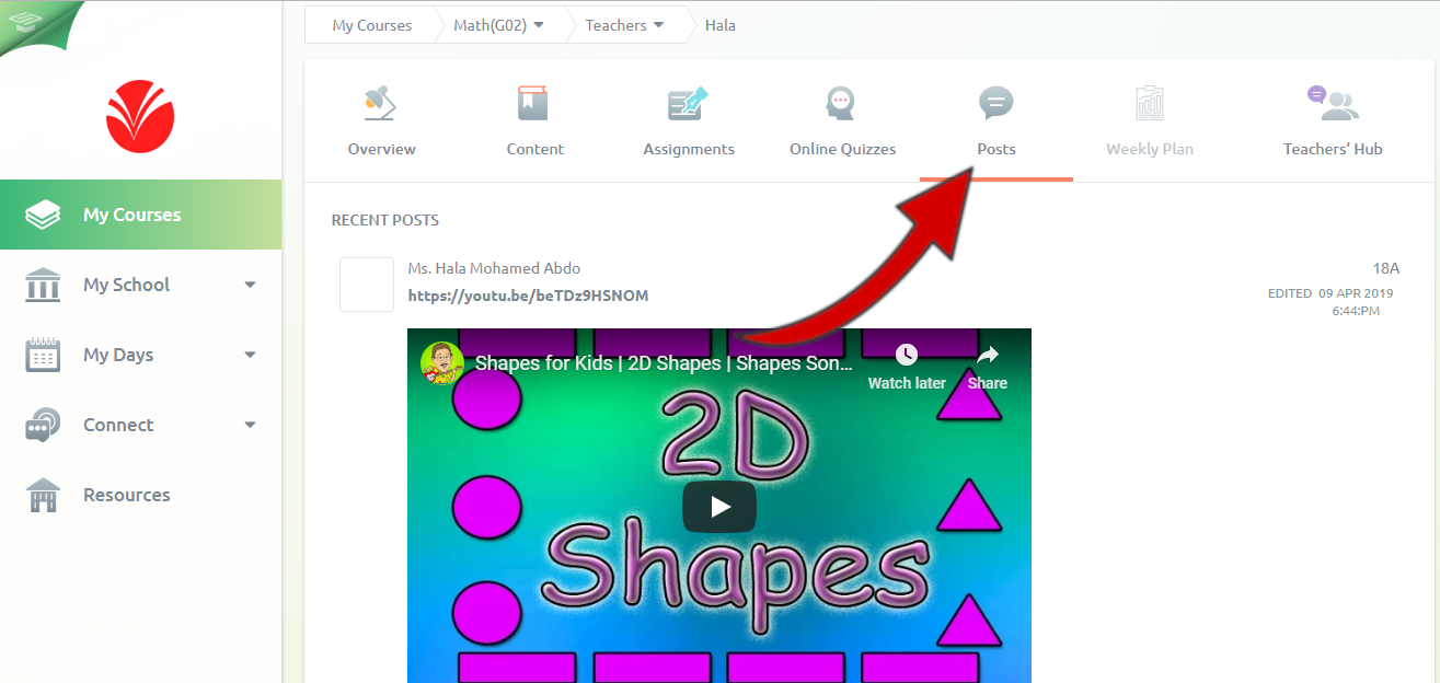 1. You can view posts by the teacher and the dates they are posted on by clicking the Posts tab.