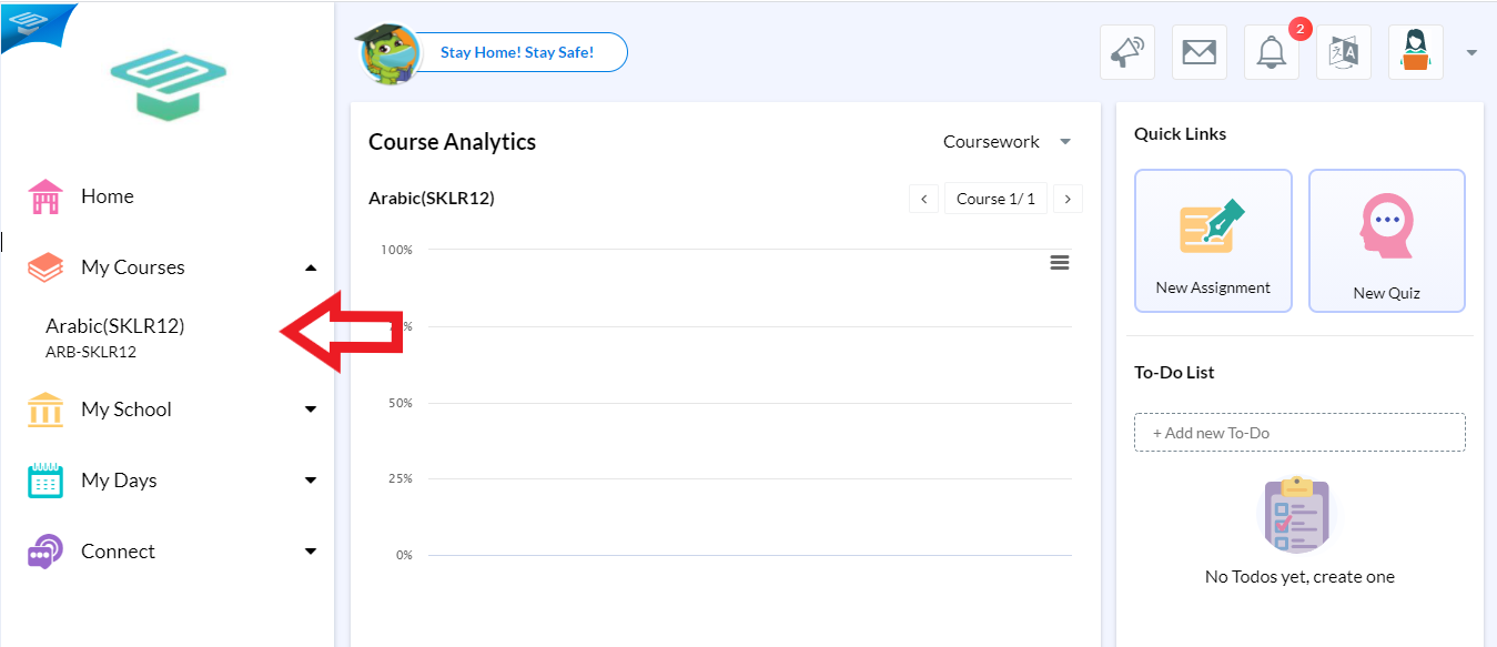 1.After logging in as a Teacher, select My Courses from the navigation tab on the left.
