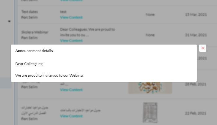 To review an announcement, login as a parent with the username and password on Skolera web app.