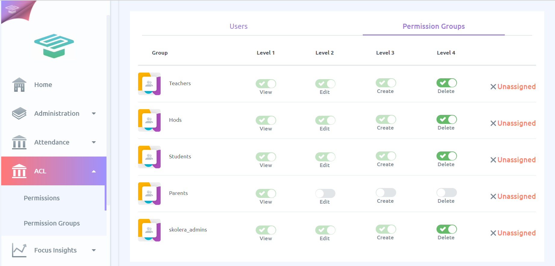 - You can remove a group by clicking on Unassigned.