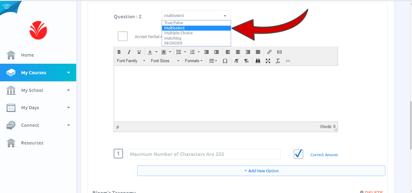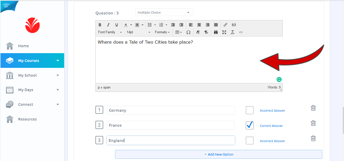 4. Type the options next to the numbered boxes and click the +Add New Option button to add more options.