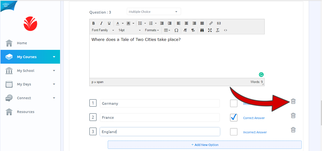 5. You can erase answers by clicking the trashcan button corresponding to them.