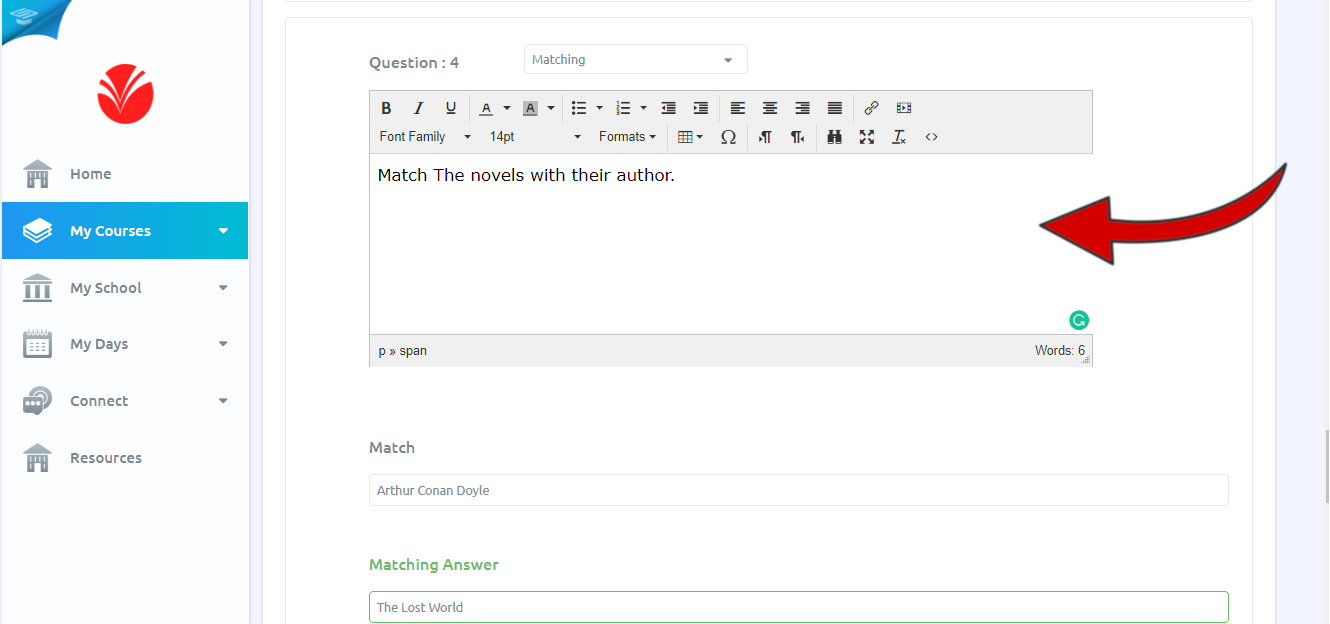3. Type an item in the Match box and its matching item in the Matching Answer box.
