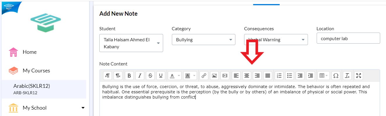 A big part of a teacher's job is assessing students' behavior as well as their Academic work. Skolera provides a very helpful tool that allows the teacher to communicate any comments on a student's behavior, negative or positive, to parents, other teachers, and the student him/herself.