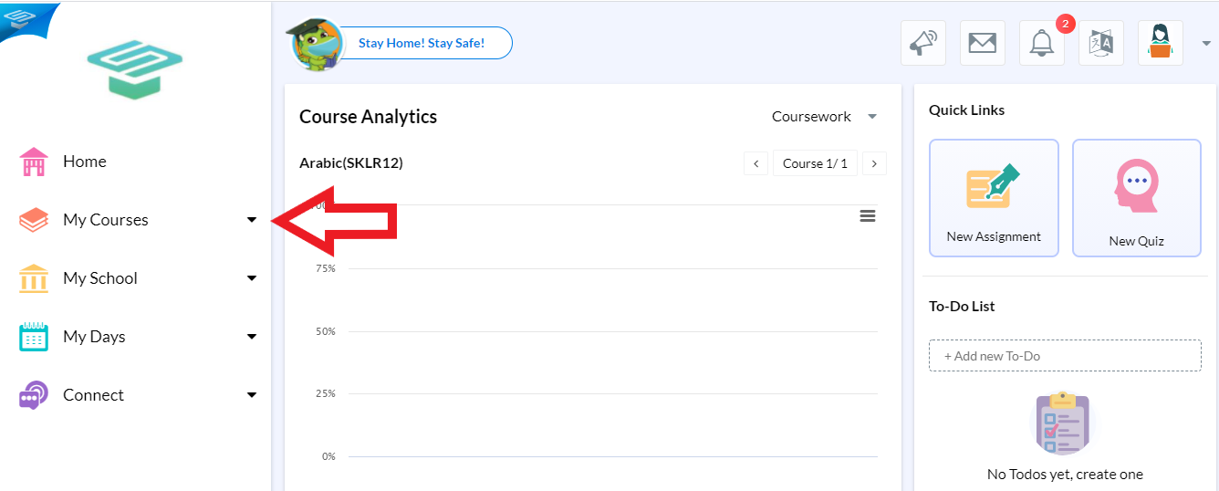 1. After logging in as a Teacher, select My Courses from the navigation tab on the left.