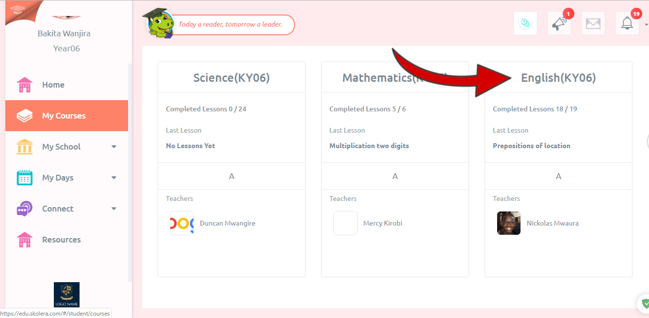 5. If the teacher uploads content to a certain lesson, a number other than 0 should appear next to it, click that lesson.