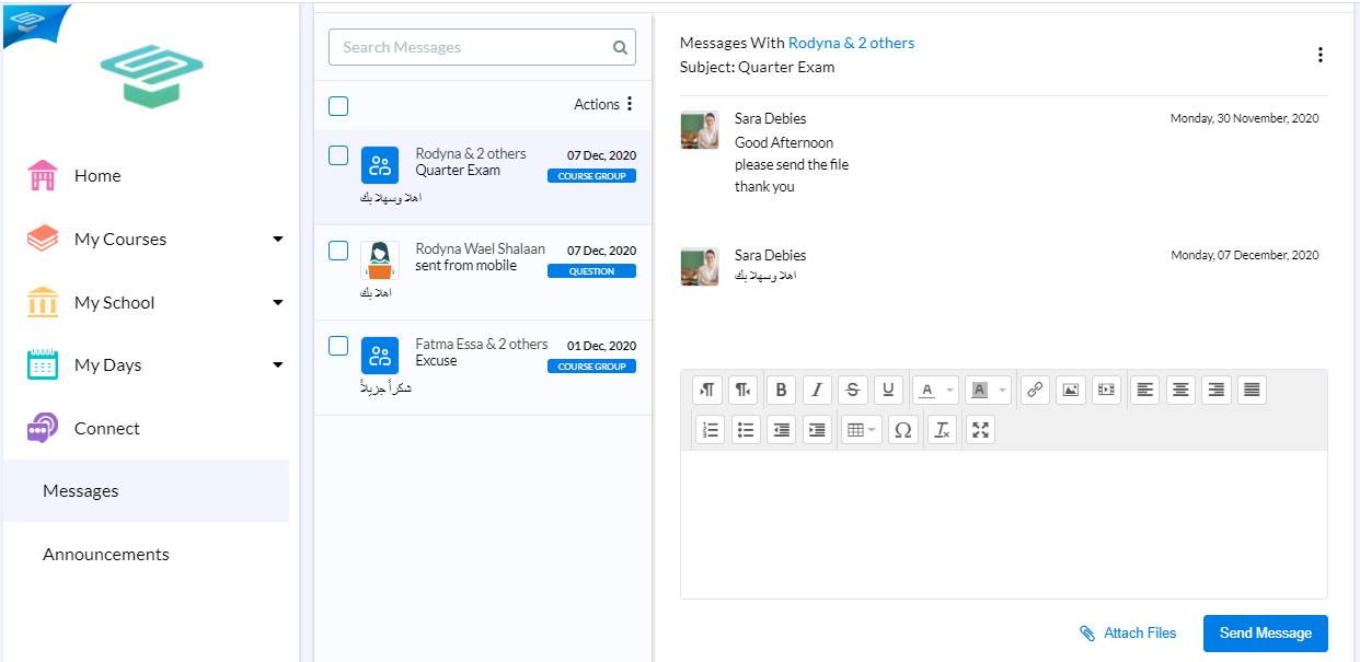 - The Second is to check All messages from the Navigation menu > Connect >Messages