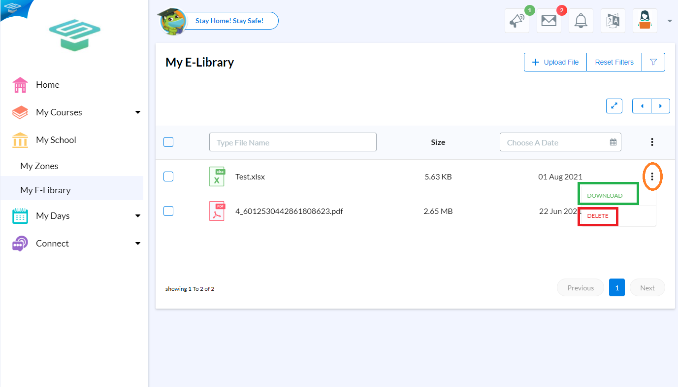 - From The Navigation Menu Click On < My School > And Then Click on < My E-Library >.