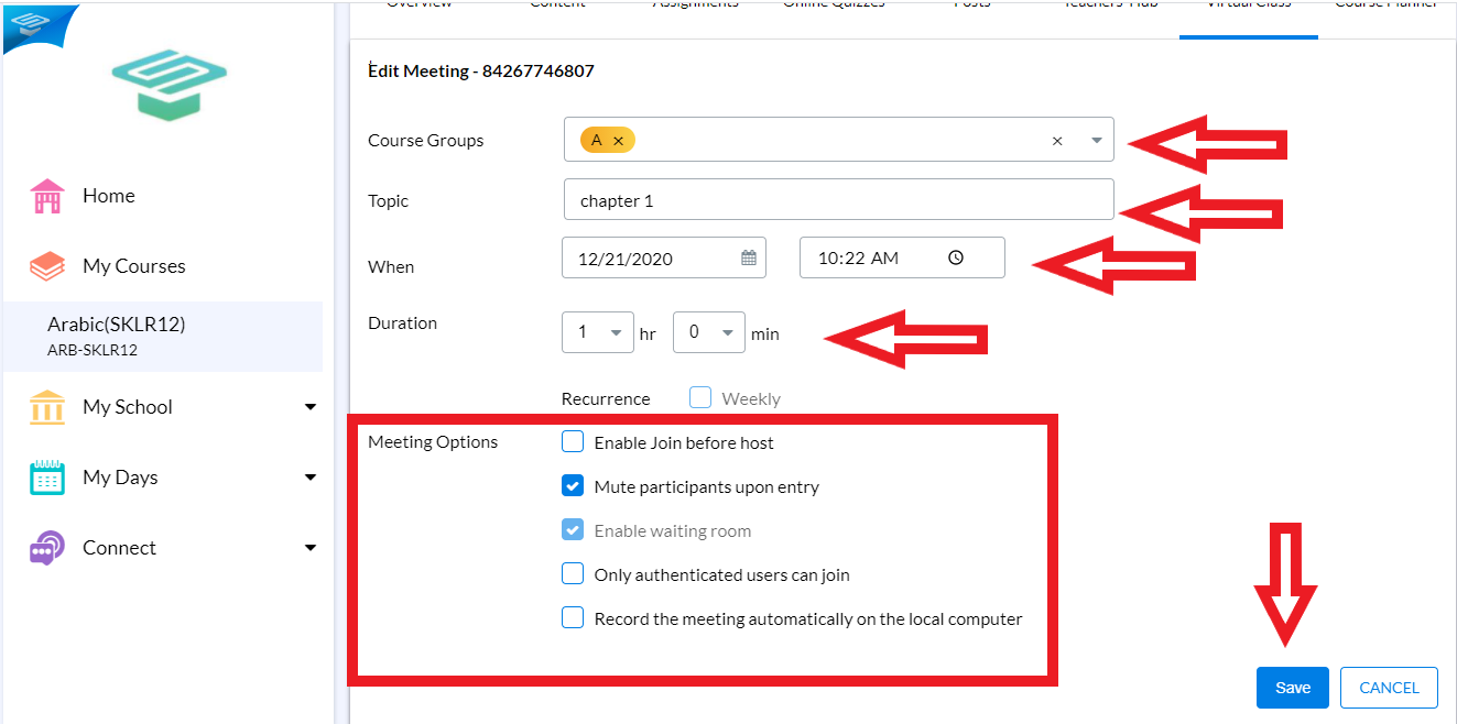 2.Courses List Will Expand ,Choose The Required Course "That You want to Edit its virtual Class".