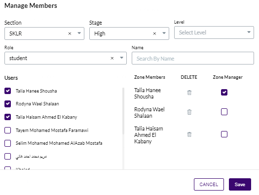 Start Checking the boxes beside the names so that you assign the members to the Zone
