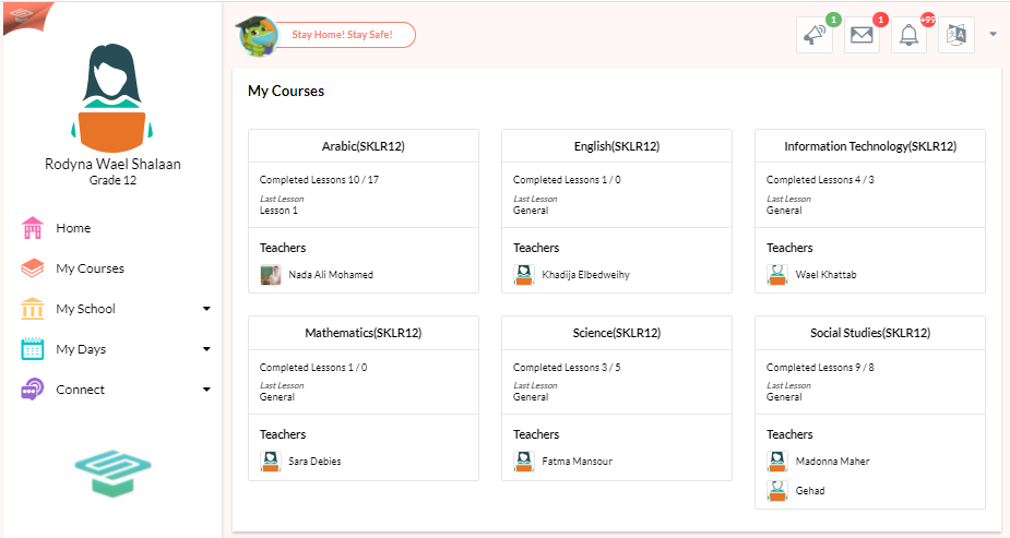 All Courses assigned are shown and Teachers' names will be displayed under each course