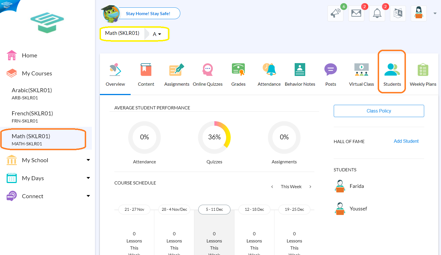 - Click on The Course That You Want To Fill in The Progress Report for Its Students.