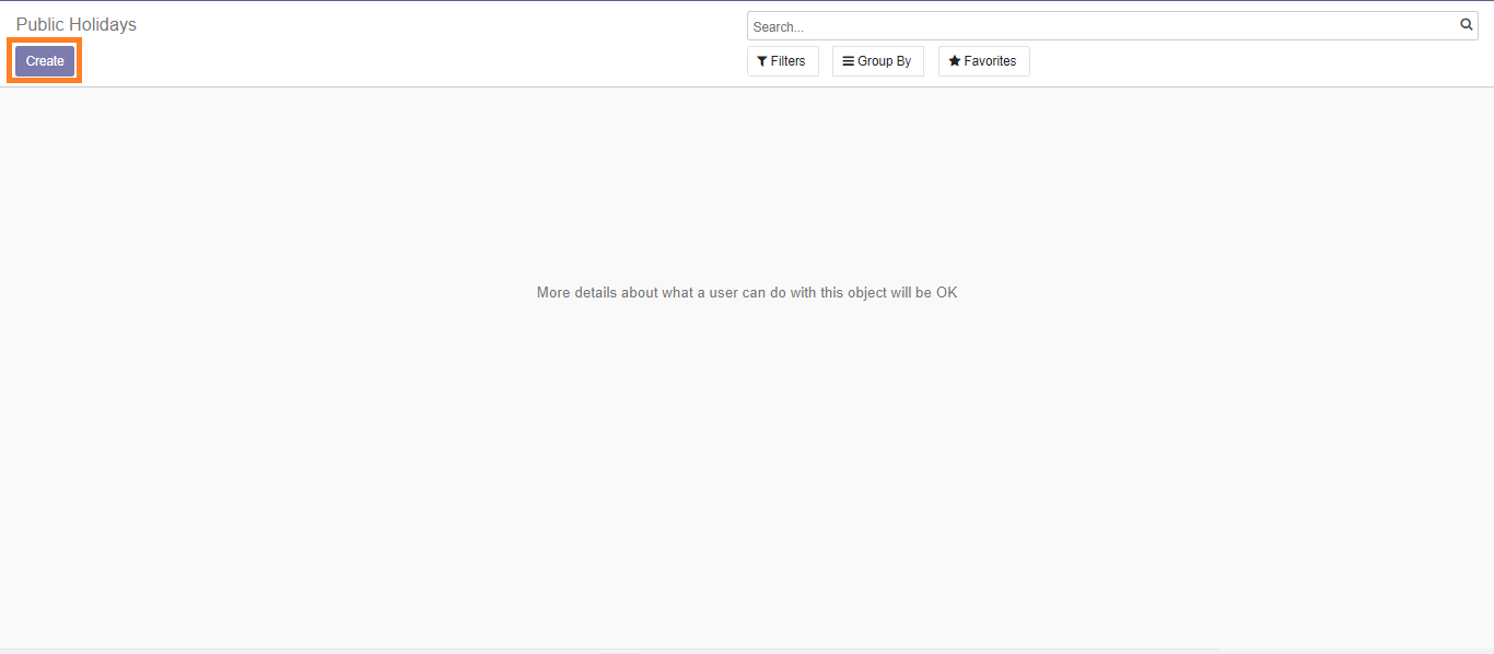 - Action: Click the ‘Create’ button to start the process of adding a new public holiday.