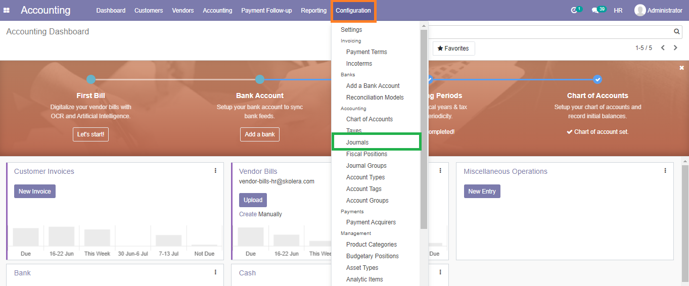 - Choose ‘Journals’ from the options available under the Configuration menu.