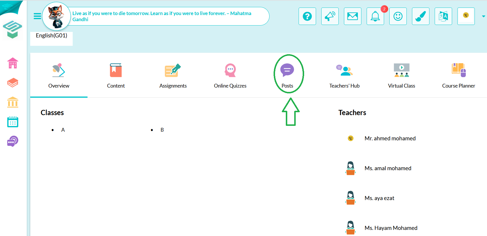 You can now manage posts effectively, as you can create, edit, or delete posts when needed, in addition to having full control over students' replies to these posts — whether by allowing or disabling comments, or deleting any inappropriate reply , follow these simple steps.
