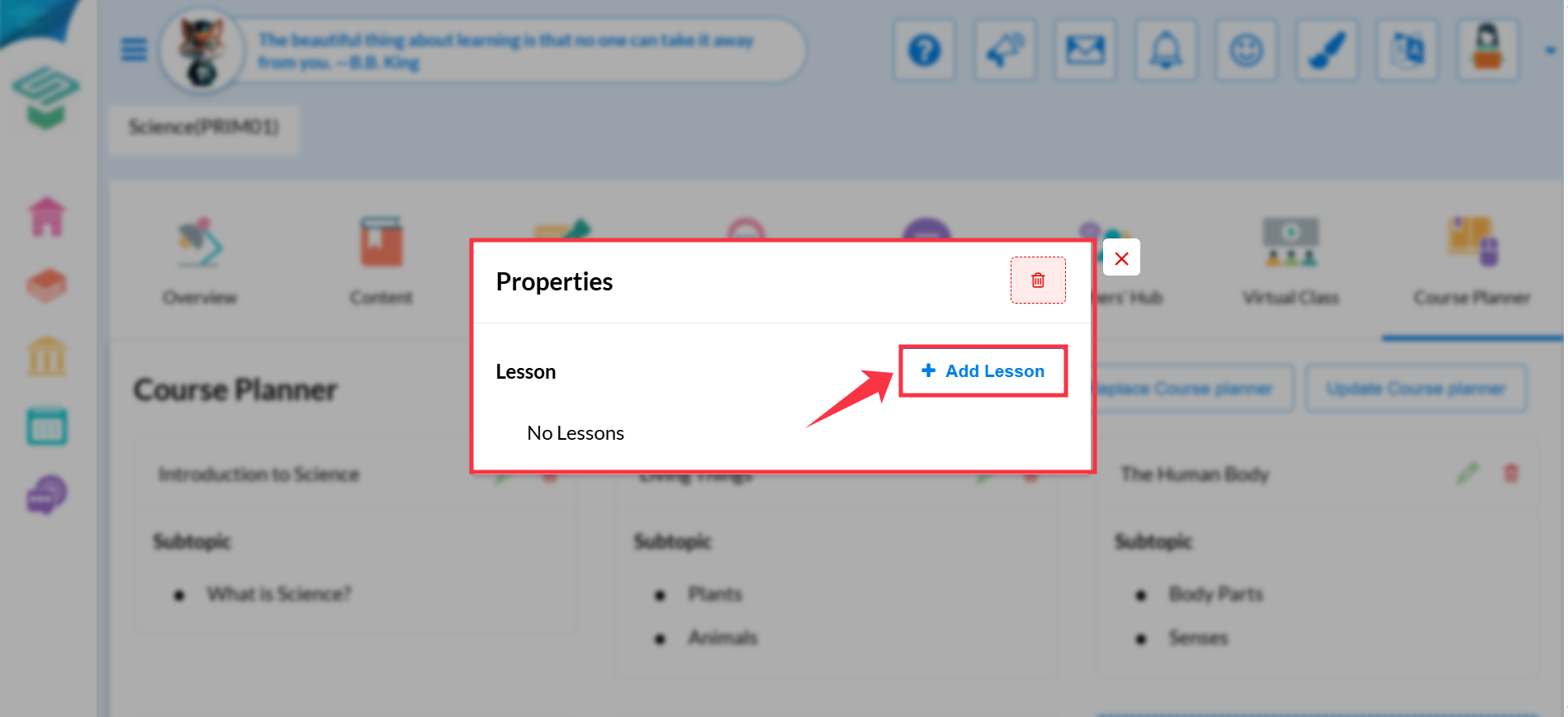 Click the trash icon beside the lesson name to delete.