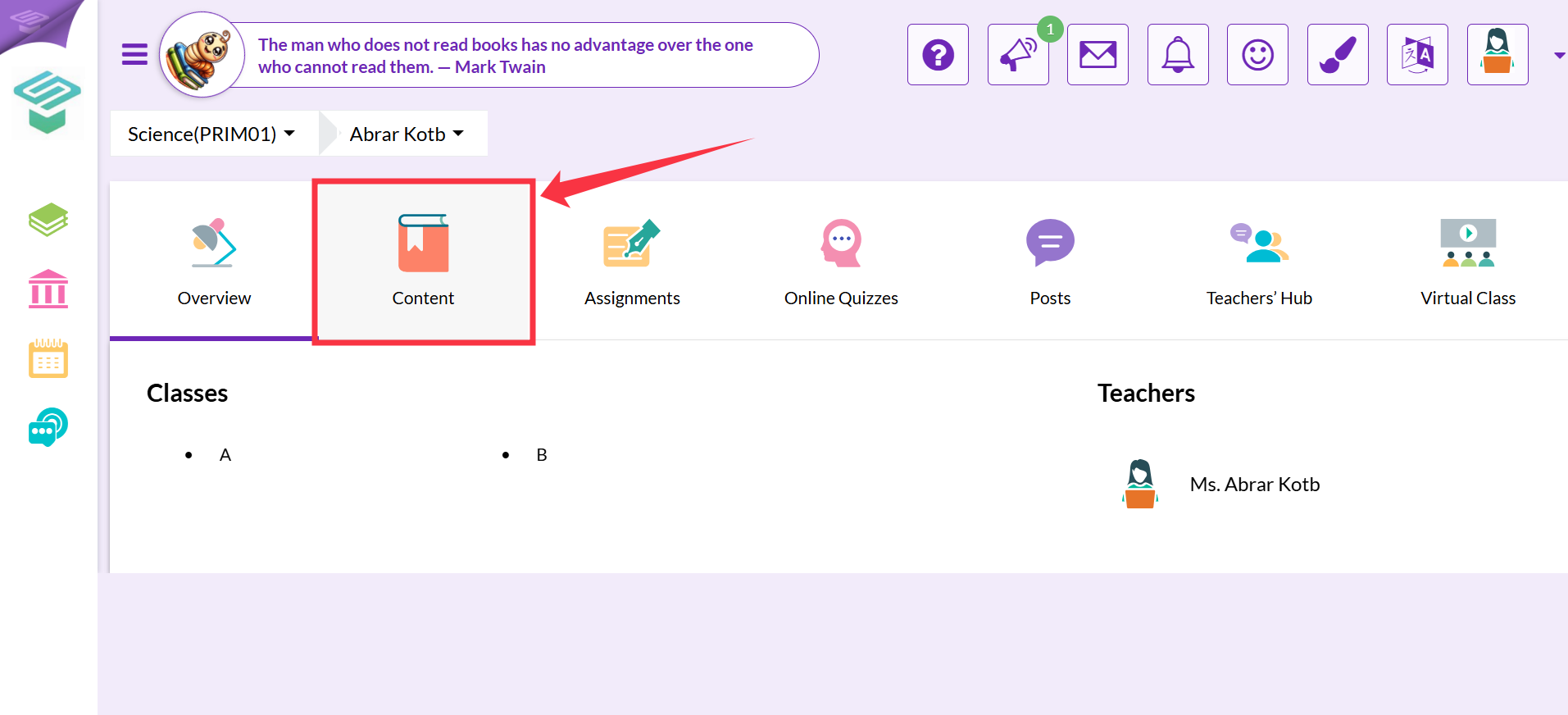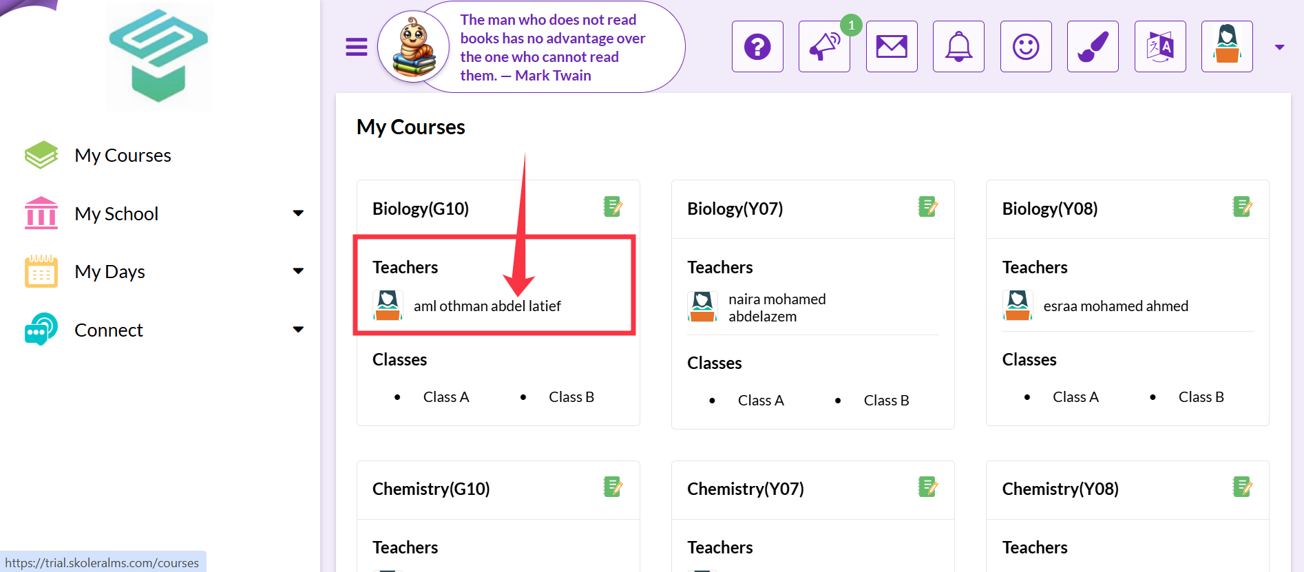 2. Click the name or image of the teacher you want to whose activity you want to view.