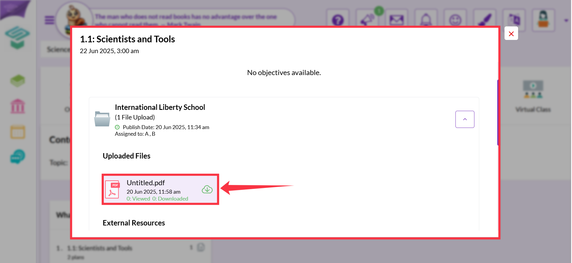 2. You can now download the content by clicking the cloud button next to it, or view it online by clicking directly on it.