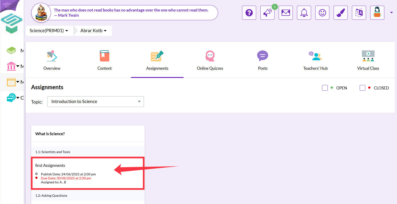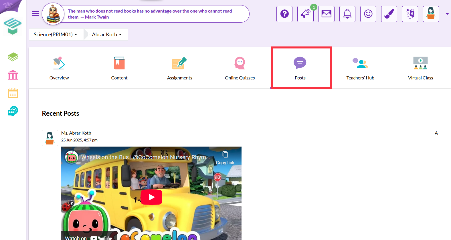 1. You can view posts by the teacher and the dates they are posted on by clicking the Posts tab.