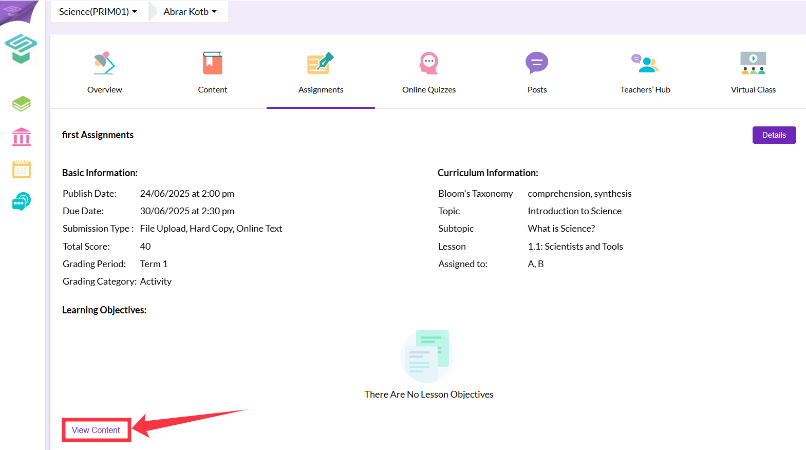 You will also be able to view the content uploaded specifically for this homework by clicking the View Content button.