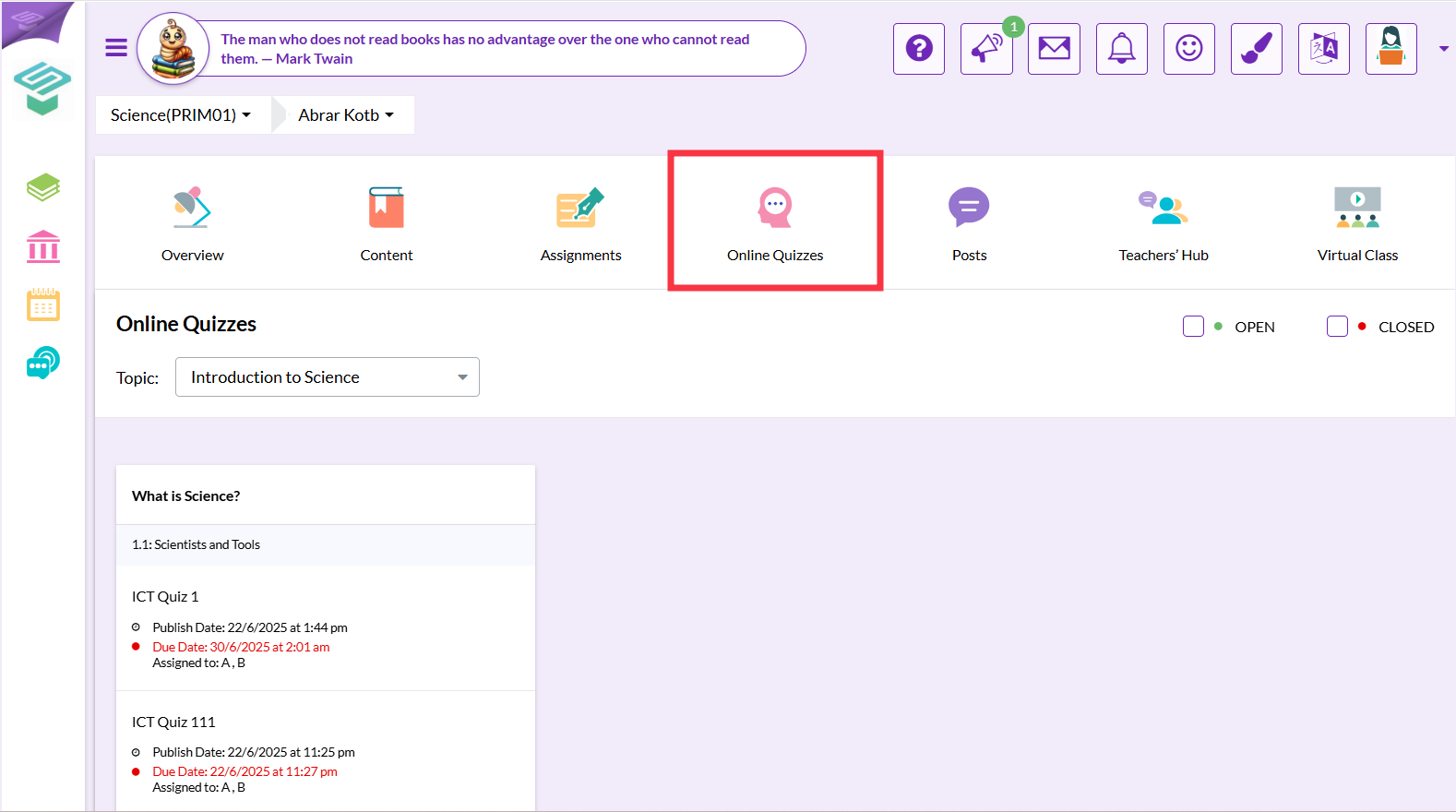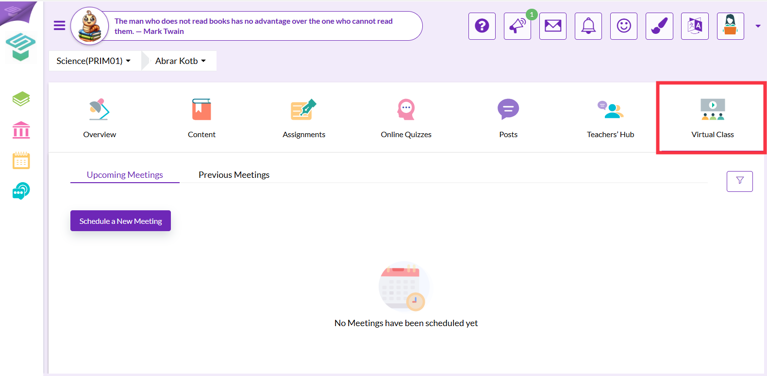 You can view virtual classes by the teacher and the dates they are marked on by clicking the Virtual Class tab.