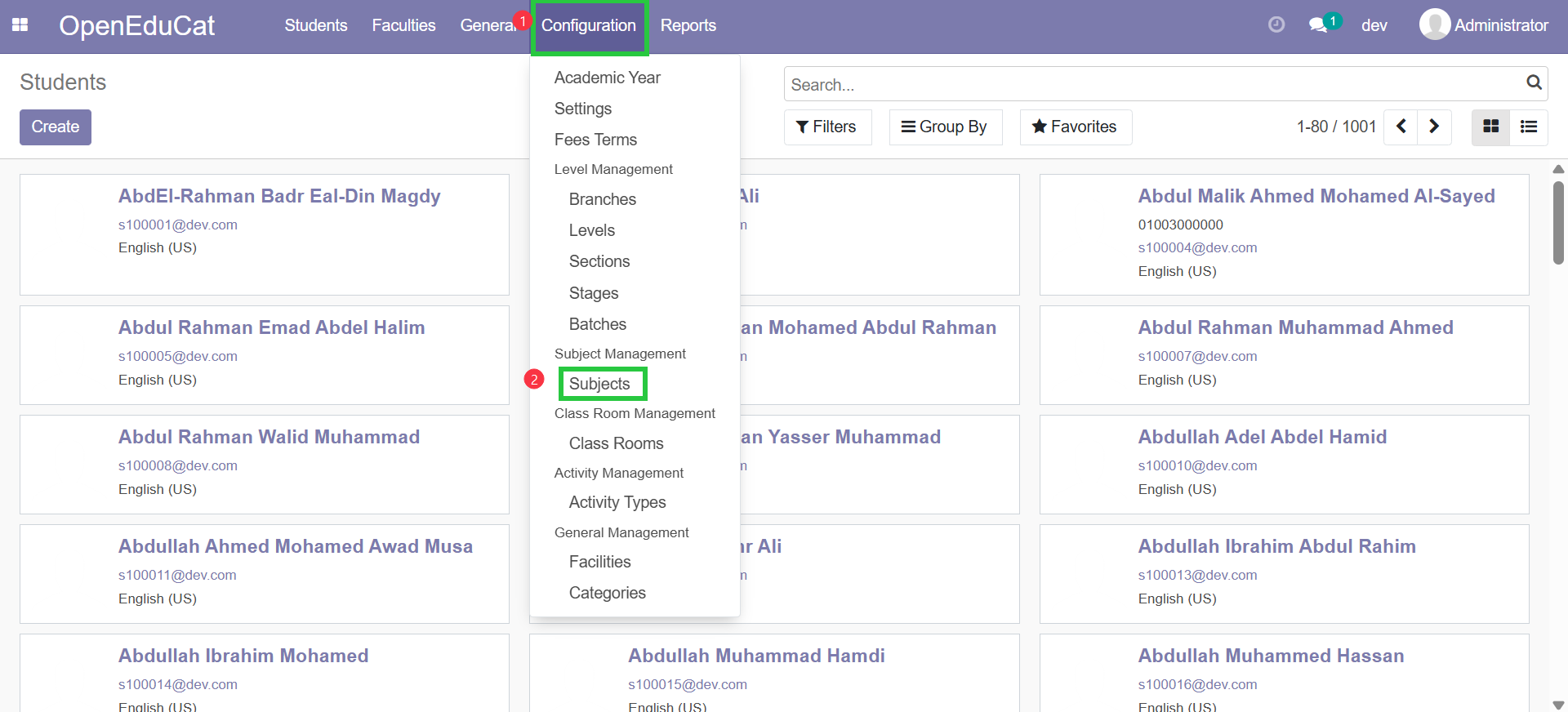 1. Go to the "OpenEduCat" app from the main dashboard.