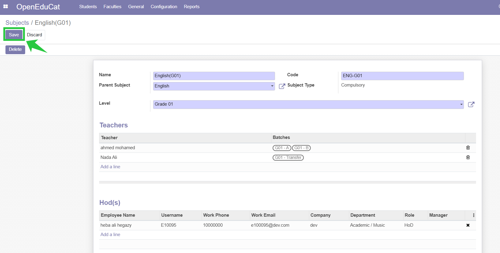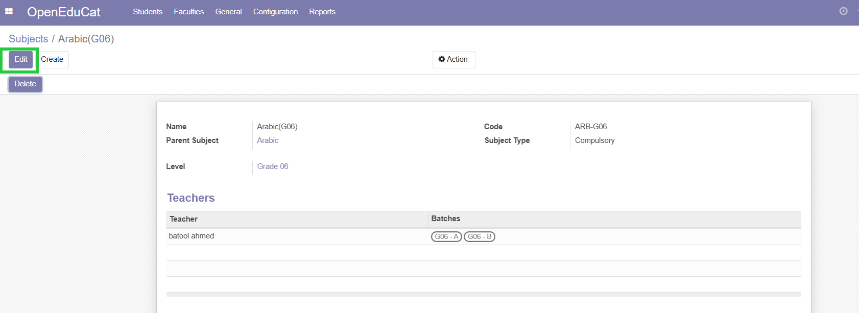 7. Click on the name of the subject , Then click on "Edit"