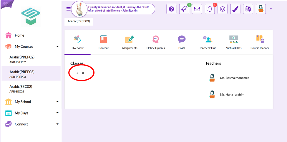 - From the teacher homepage from left navigation bar go to