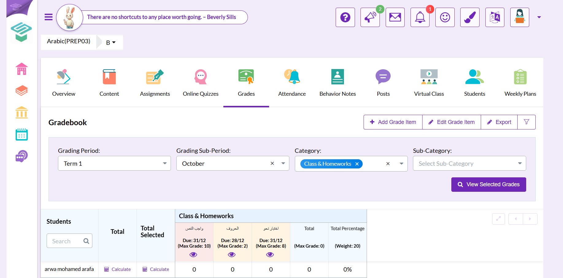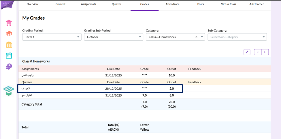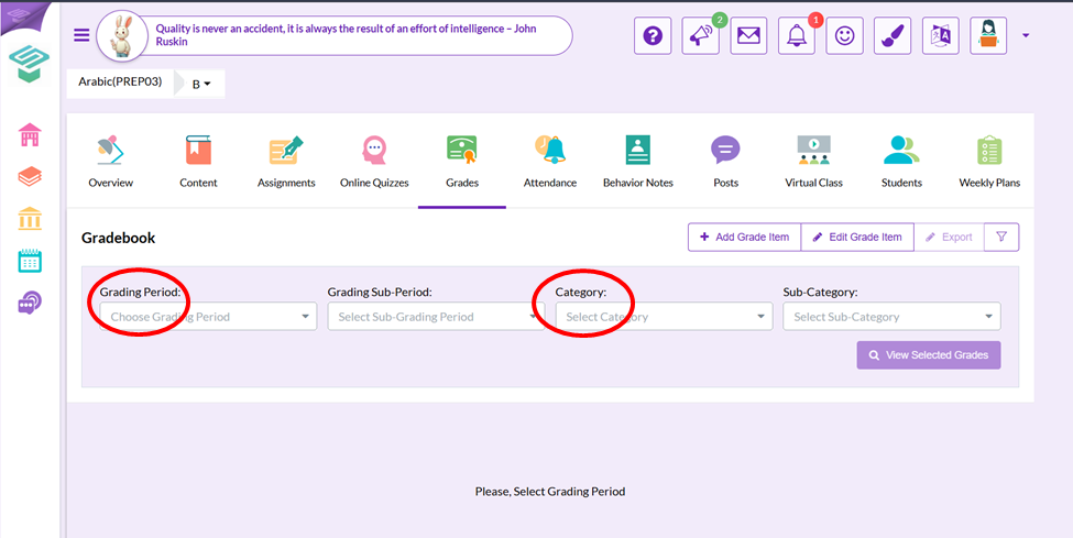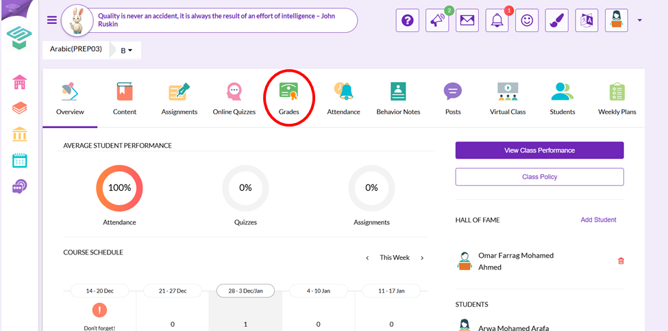 - Choose Grades icon