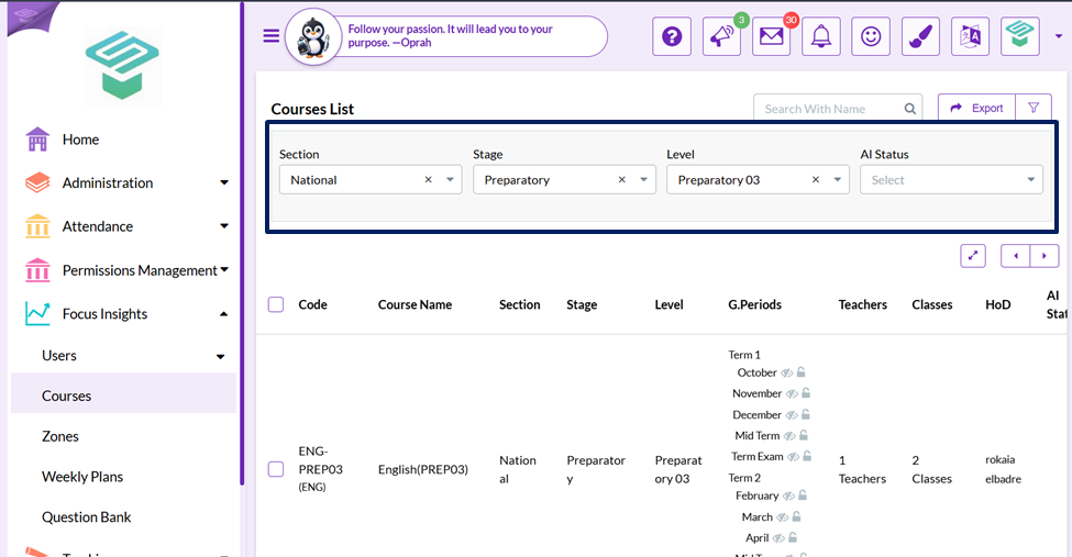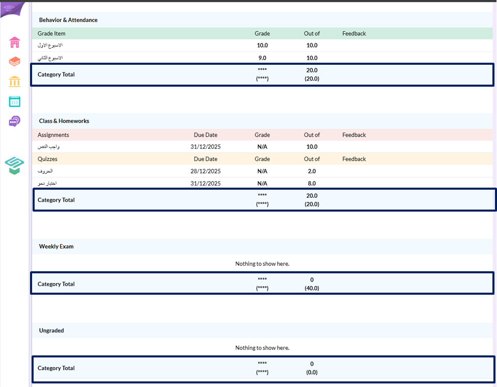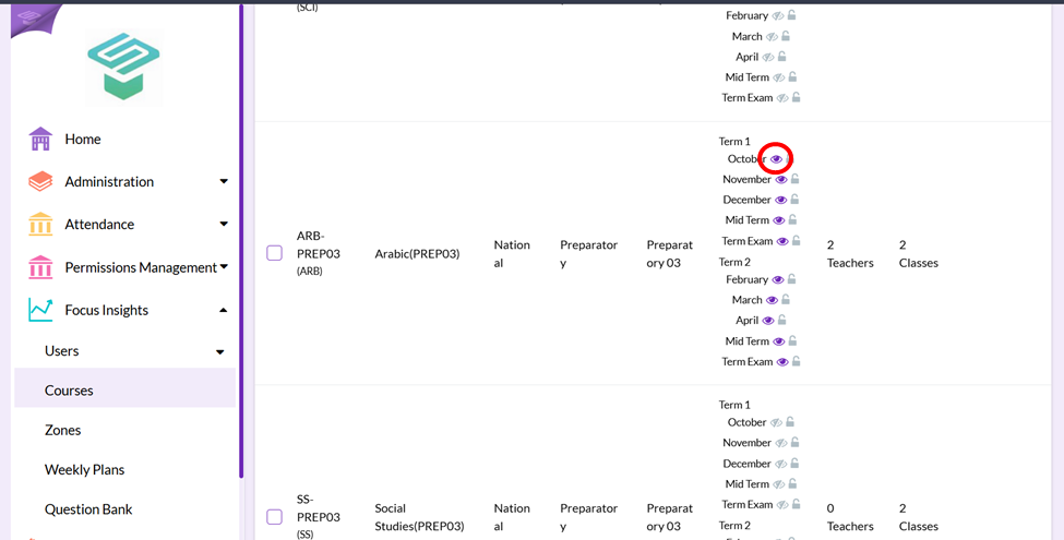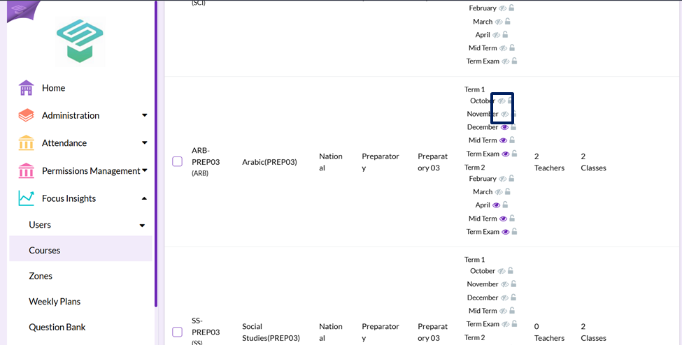 Step5: Press on Eye button to hide total grade of the required course in the required grading period