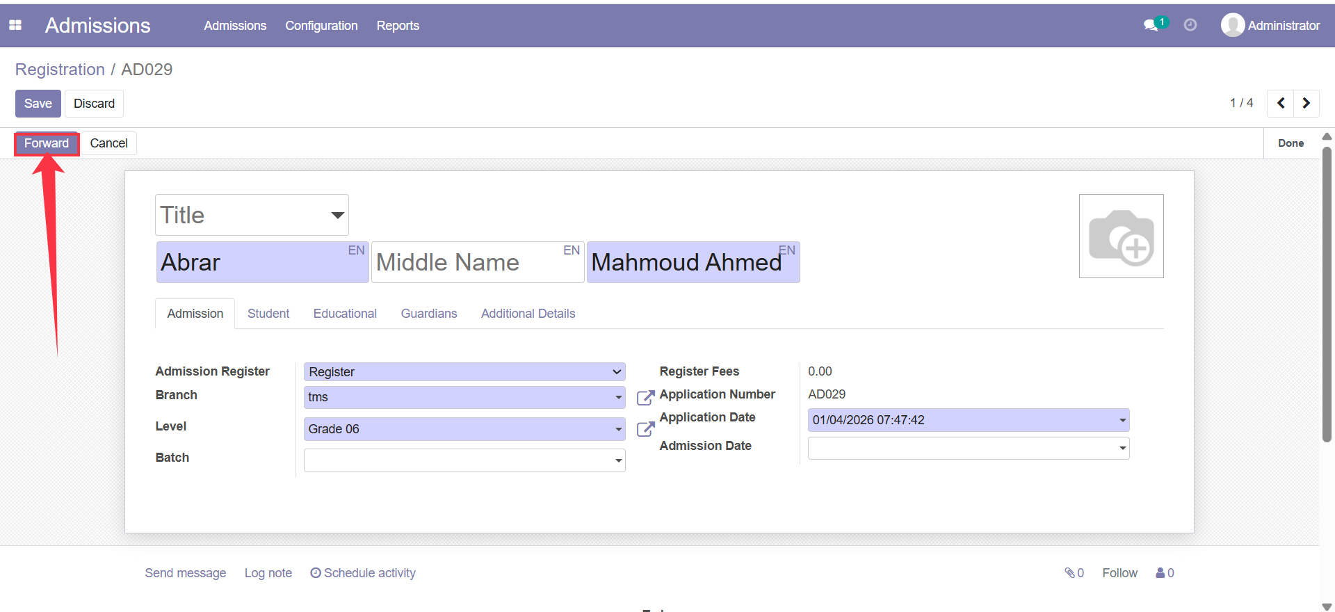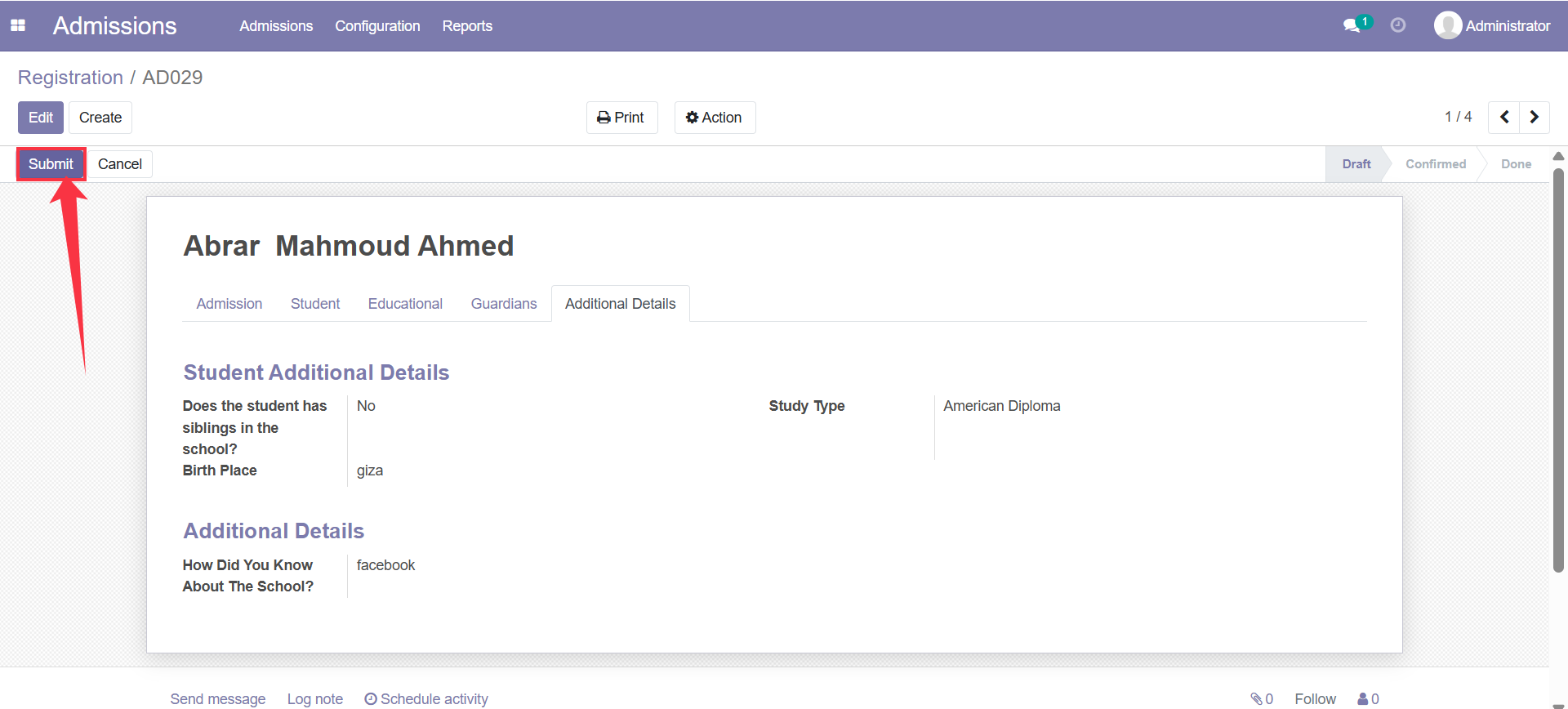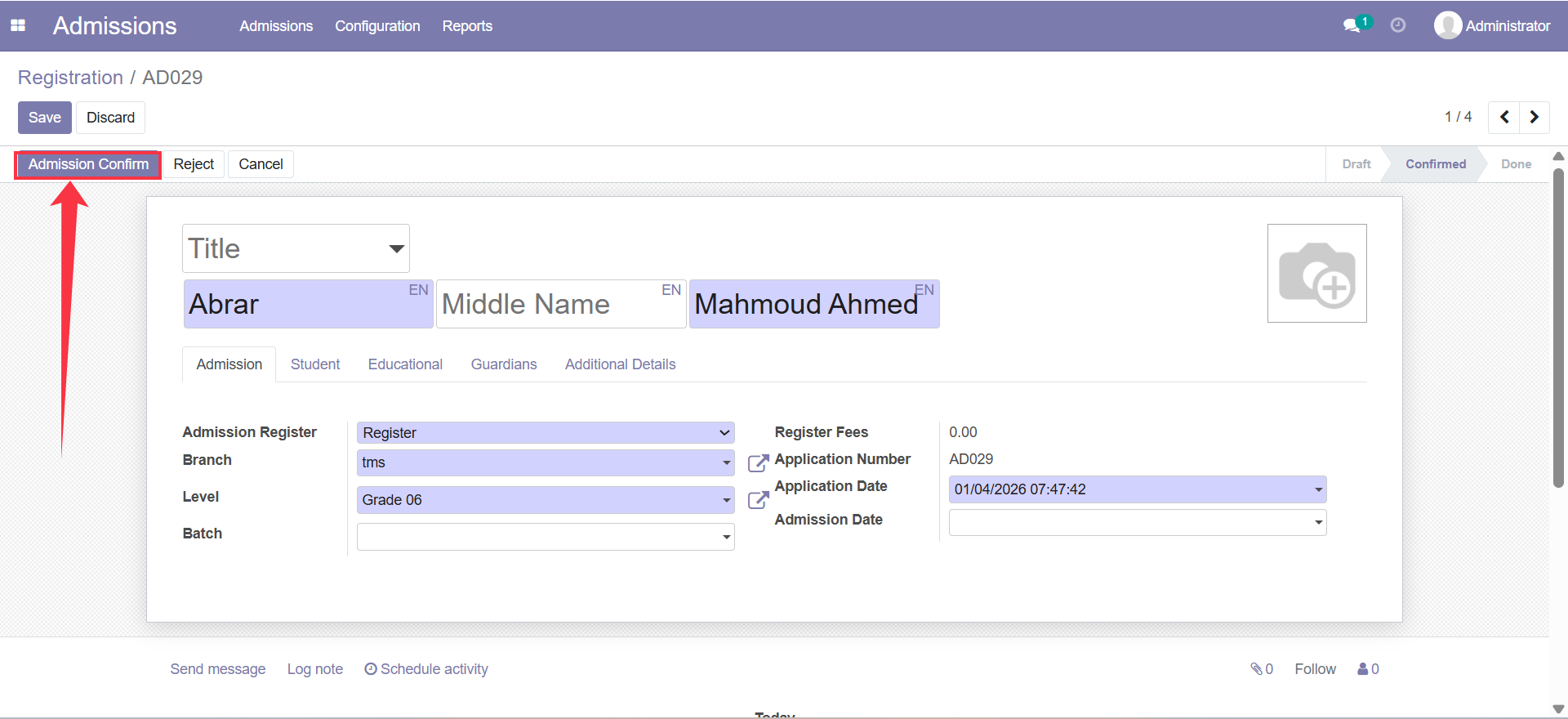 This article explains how to process and enroll a student application in Odoo 14 through the Admissions module.